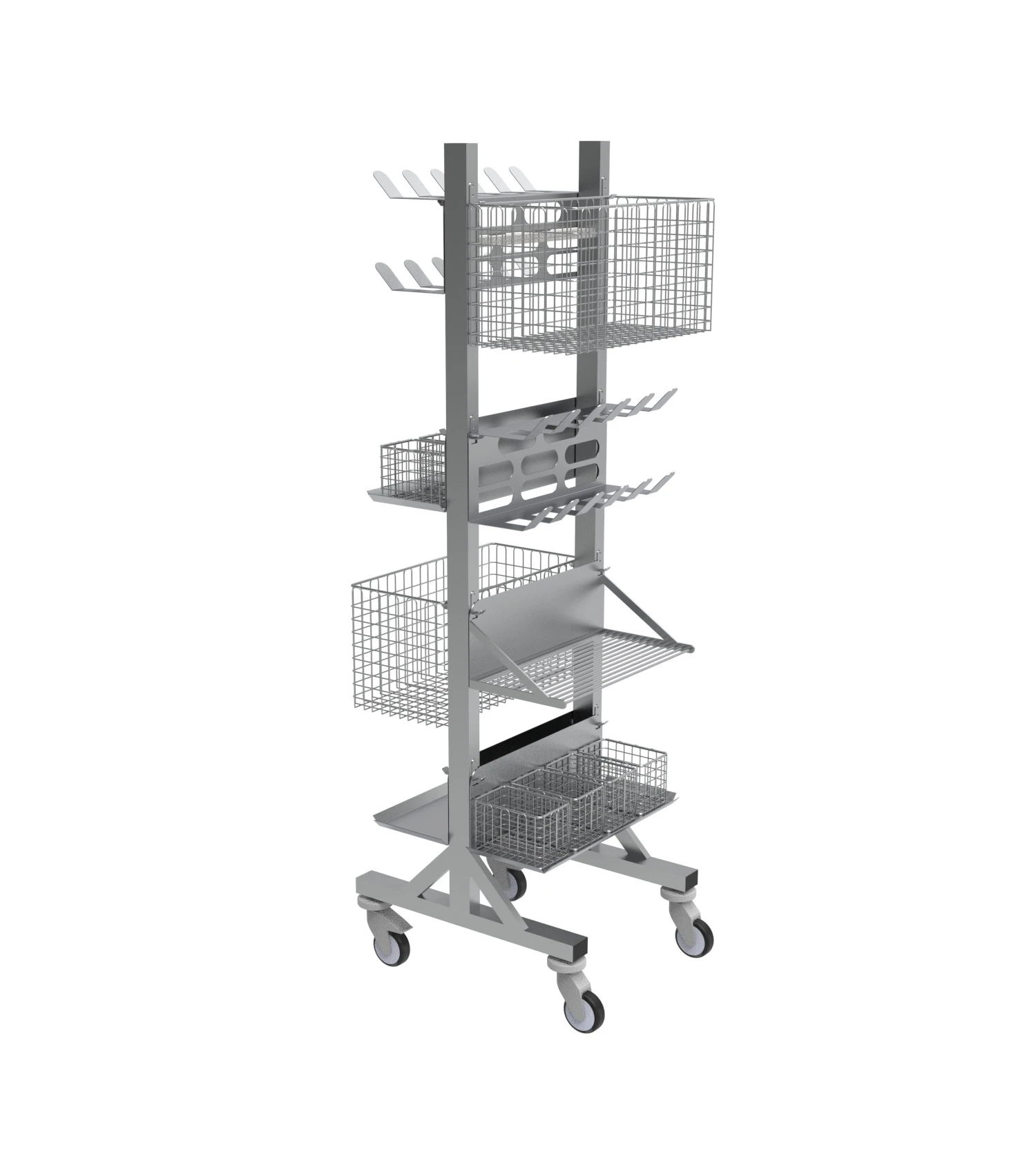 Material shelves, (tilt bins, cap, bonnet, mask, slipper, etc.)